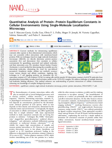 Keywords: | DNA-PAINT, T cells, equilibrium constant, protein−protein interactions, single-molecule localization microscopy |