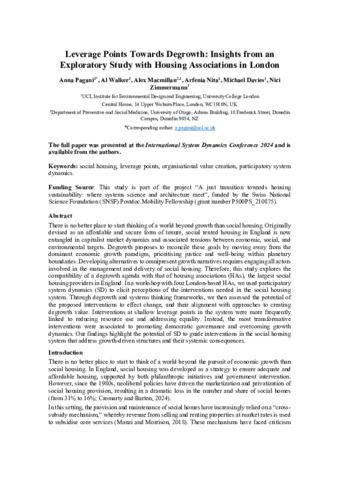 | Title: | Leverage Points Towards Degrowth: Insights from an Exploratory Study with Four Large Housing Associations in London |