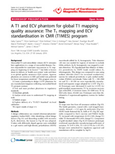 A T1 and ECV phantom for global T1 mapping quality assurance: The T1 mapping and ECV standardisation in CMR (T1MES) program.