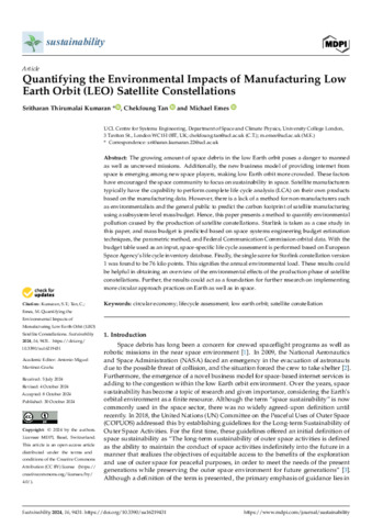 Quantifying the Environmental Impacts of Manufacturing Low Earth Orbit (LEO) Satellite Constellations.