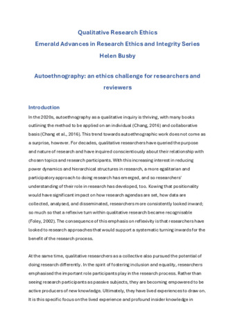 | Title: | Autoethnography: an ethics challenge for researchers and reviewers |