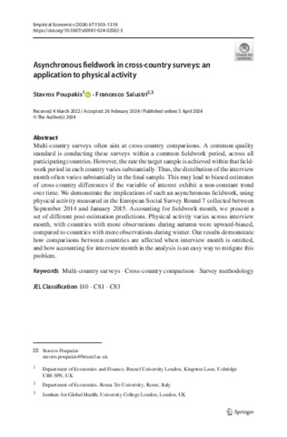 Title: | Asynchronous fieldwork in cross-country surveys: an application to physical activity |
