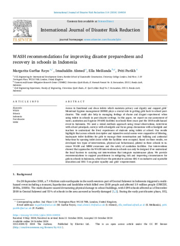 | Title: | WASH recommendations for improving disaster preparedness and recovery in schools in Indonesia |