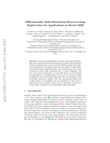 Diffeomorphic Multi-resolution Deep Learning Registration for Applications in Breast MRI.