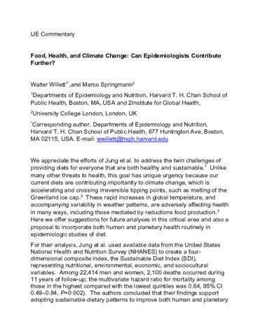 | Title: | Food, health, and climate change: can epidemiologists contribute further? |