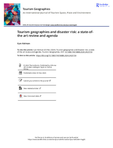 Title: | Tourism geographies and disaster risk: A state-of-the art review and agenda |