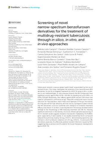 Title: | Screening of novel narrow-spectrum benzofuroxan derivatives for the treatment of multidrug-resistant tuberculosis through in silico, in vitro, and in vivo approaches |