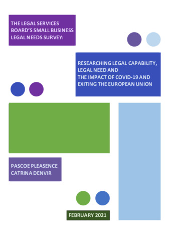 This paper sets out conceptual frameworks for understanding the ‘legal capability’ of small and medium-sized enterprises (SMEs) in England and Wales and their ‘legal need’. It also provides practical frameworksfor capturing legal capability data and measuring met and unmet legal need through the Legal Services Board’s(LSB) legal needs survey of small businesses (“the LSB survey”). Finally, it proposes methods for assessing the impact of the Covid-19 pandemic and the United Kingdom’s exit from the European Union on SMEs in England and Wales, in relation to both the prevalence of ‘justiciable’ problems and ways in which SMEs have dealt with problems. The LSB survey was first conducted between December 2012 and January 2013. 1 Follow-up surveys were then conducted in 2015 and 2017. A draft questionnaire for a third follow-up survey is included as an appendix to this paper. The draft questionnaire implements the ideas discussed in this paper, as well as drawing on a detailed commentary on the 2017 questionnaire submitted to the LSB at an earlier date. The original LSB survey questionnaire adopted the approach set out in A Framework for Benchmarking Small Business Consumers’ Need for and Use of Legal Services. 2