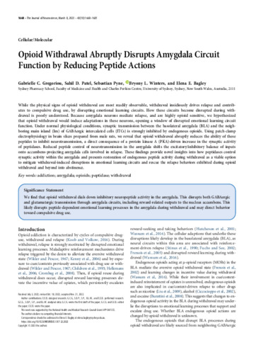 Title: | Opioid Withdrawal Abruptly Disrupts Amygdala Circuit Function by Reducing Peptide Actions |