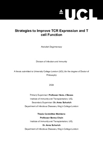 Title: | Strategies to Improve TCR Expression and T cell Function |