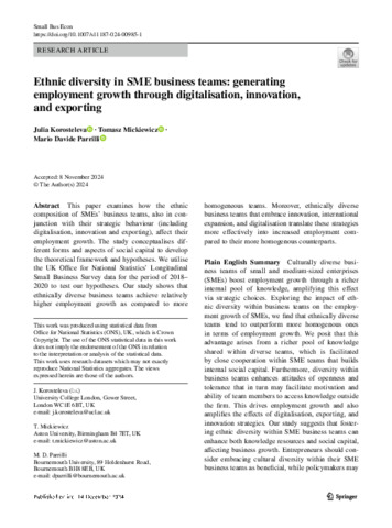 Title: | Ethnic diversity in SME business teams: generating employment growth through digitalisation, innovation, and exporting |