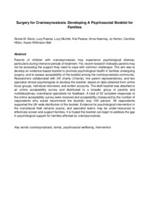 Title: | Surgery for Craniosynostosis: Developing a Psychosocial Booklet for Families |