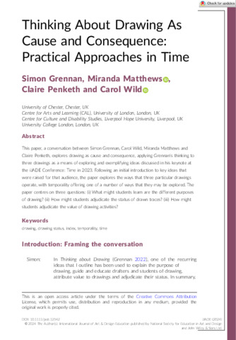 Int J Art Design Ed - 2024 - Grennan - Thinking About Drawing As Cause and Consequence Practical Approaches in Time.pdf - Published Version Download (526kB) | Preview |