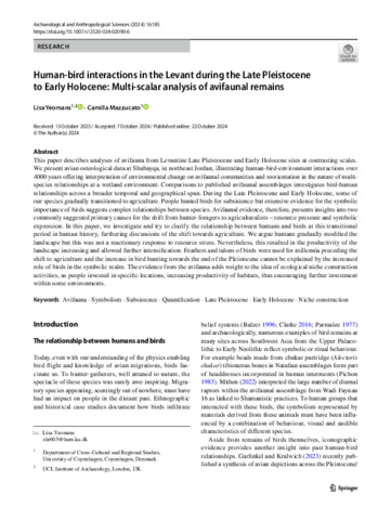Human-bird interactions in the Levant during the Late Pleistocene to Early Holocene: Multi-scalar analysis of avifaunal remains.