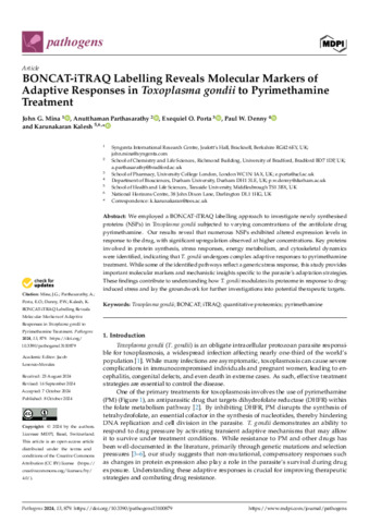 BONCAT-iTRAQ Labelling Reveals Molecular Markers of Adaptive Responses in Toxoplasma gondii to Pyrimethamine Treatment.