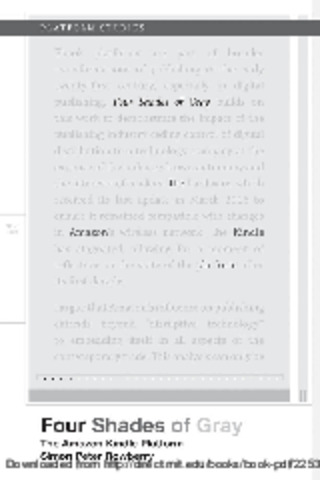 This first book-length analysis of Amazon's Kindle explores the platform's technological, bibliographical, and social impact on publishing. Four Shades of Gray offers the first book-length analysis of Amazon's Kindle and its impact on publishing. Simon Peter Rowberry recounts how Amazon built the infrastructure for a new generation of digital publications, then considers the consequences of having a single company control the direction of the publishing industry. Exploring the platform from the perspectives of technology, texts, and uses, he shows how the Kindle challenges traditional notions of platforms as discrete entities. He argues that Amazon's influence extends beyond “disruptive technology” to embed itself in all aspects of the publishing trade; yet despite industry pushback, he says, the Kindle has had a positive influence on publishing. Rowberry documents the first decade of the Kindle with case studies of Kindle Popular Highlights, an account of the digitization of books published after 1922, and a discussion of how Amazon's patent filings reflect a shift in priorities. Rowberry argues that while it was initially convenient for the book trade to outsource ebook development to Amazon, doing so has had adverse consequences for publishers in the mid- and long term, limiting opportunities for developing an inclusive and forward-thinking digital platform. While it has forced publishers to embrace digital forms, the Kindle has also empowered some previously marginalized readerships. Although it is still too early to judge the long-term impact of ebooks compared with that of the older technologies of clay tablets, the printing press, and offset printing, the shockwaves of the Kindle continue to shape publishing.