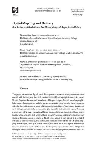 Title: | Digital Mapping and Memory: Recollection and Mediation in Two Memory Maps of Anglo-Jewish History |