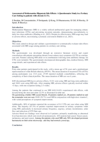 Assessment of Methenamine Hippurate Side Effects: A Questionnaire Study in a Tertiary Care Setting in patients with chronic LUTs.