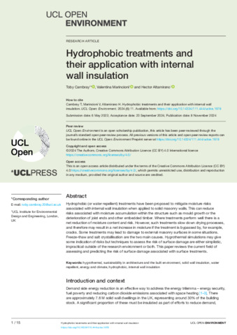 Title: | Hydrophobic treatments and their application with internal wall insulation |