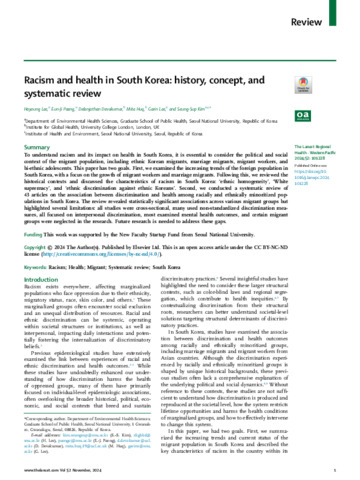| Title: | Racism and health in South Korea: history, concept, and systematic review |