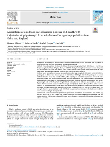 | Title: | Associations of childhood socioeconomic position and health with trajectories of grip strength from middle to older ages in populations from China and England |