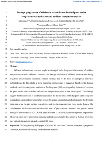 | Title: | Damage progression of offshore-corroded round-ended piers under long-term solar radiation and ambient temperature cycles |