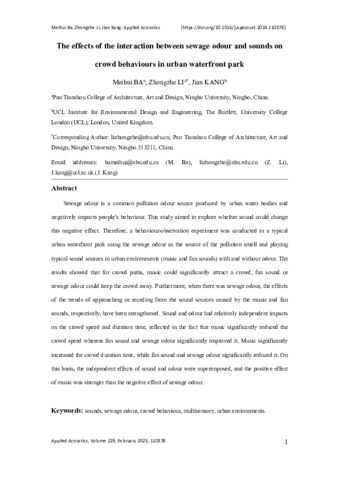 | Title: | The effects of the interaction between sewage odour and sounds on crowd behaviours in urban waterfront park |