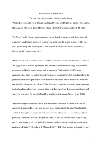 Title: | Mental health in adolescence: the role of schools-based social emotional teaching |