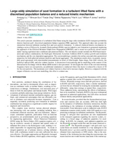 | Title: | Large eddy simulation of soot formation in a turbulent lifted flame with a discretized population balance and a reduced kinetic mechanism |