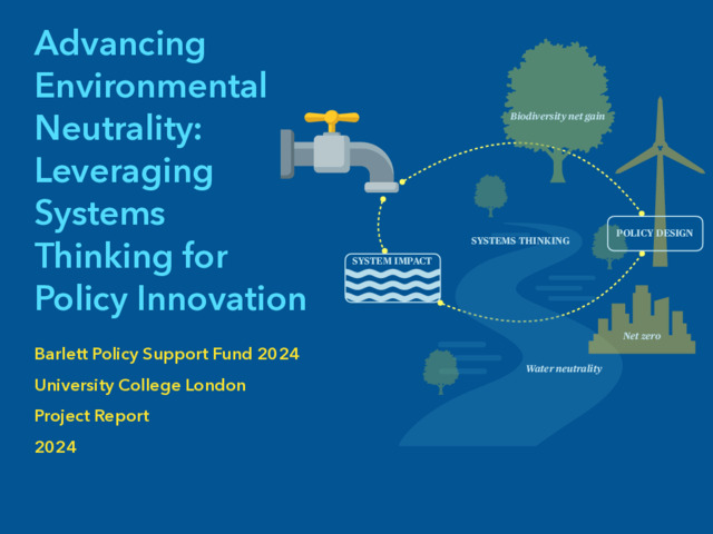 This research is funded by Bartlett Policy Support Fund 2024, exploring neutrality-policy perspectives using a systems-thinking approach. The report synthesises insights on the broader use of systems thinking tools across policy stages, systems thinking capabilities, and reflections of using a simulation modelling- driven interface as an interactive tool in creating dialogues in environmental neutrality policies.