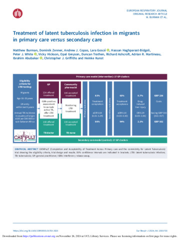 | Title: | Treatment of latent tuberculosis infection in migrants in primary care versus secondary care |