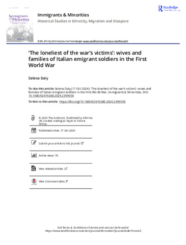 2024 - The loneliest of the war s victims wives and families of Italian emigrant soldiers in the First World War.pdf - Published Version Download (681kB) | Preview |