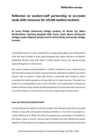| Title: | Reflection on student-staff partnership to co-create study-skills resources for UCLMS medical students |