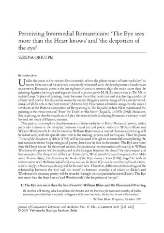 Title: | Perceiving Intermedial Romanticism: ‘The Eye sees more than the Heart knows’ and ‘the despotism of the eye’ |