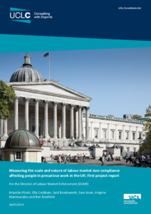Title: | Measuring the scale and nature of labour market non-compliance affecting people in precarious work in the UK: First project report |