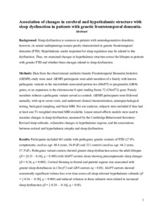 | Title: | Association of Changes in Cerebral and Hypothalamic Structure With Sleep Dysfunction in Patients With Genetic Frontotemporal Dementia |