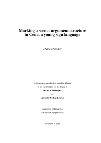 | Title: | Marking a scene: argument structure in Cena, a young sign language |