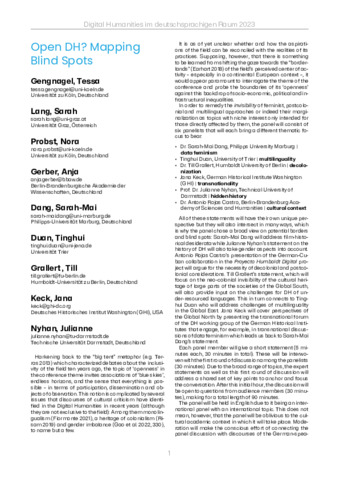 Title: | Open DH? Mapping Blind Spots |