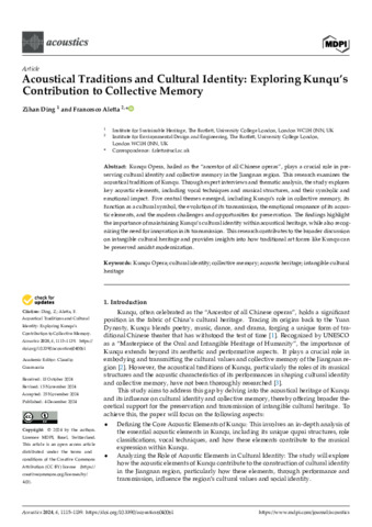 Acoustical Traditions and Cultural Identity: Exploring Kunqu's Contribution to Collective Memory.