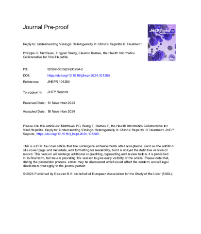 | Title: | Reply to: Understanding Virologic Heterogeneity in Chronic Hepatitis B Treatment |