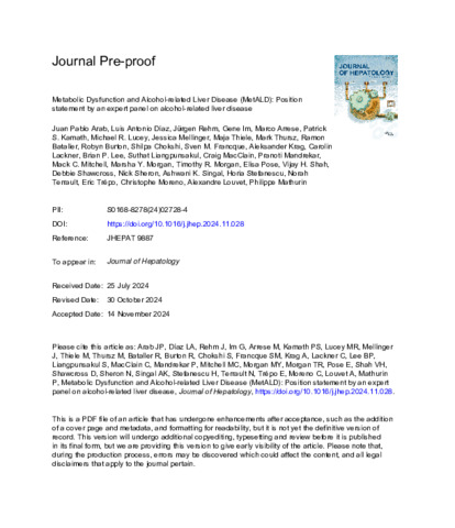 | Title: | Metabolic Dysfunction and Alcohol-related Liver Disease (MetALD): Position statement by an expert panel on alcohol-related liver disease |