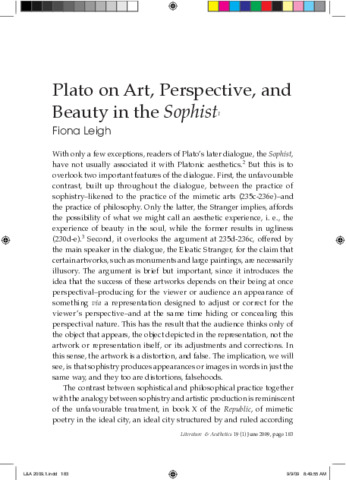 | Title: | Plato on Art, Perspective, and Beauty in the Sophist |