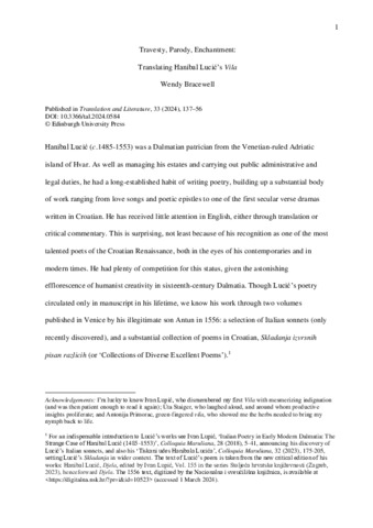 | Title: | Travesty, Parody, Enchantment: Translating Hanibal Lucić's Vila |