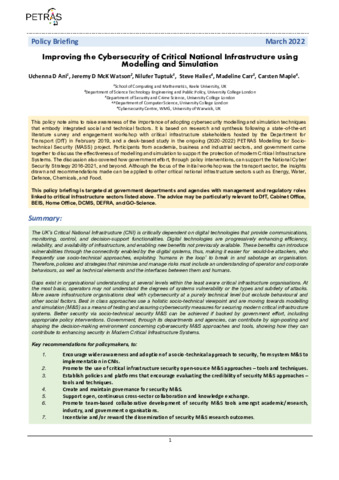 | Title: | Improving the Cybersecurity of Critical National Infrastructure using Modelling and Simulation |