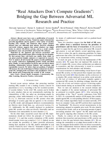 Title: | 'Real Attackers Don't Compute Gradients': Bridging the Gap between Adversarial ML Research and Practice |