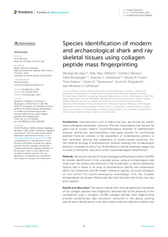 | Title: | Species identification of modern and archaeological shark and ray skeletal tissues using collagen peptide mass fingerprinting |