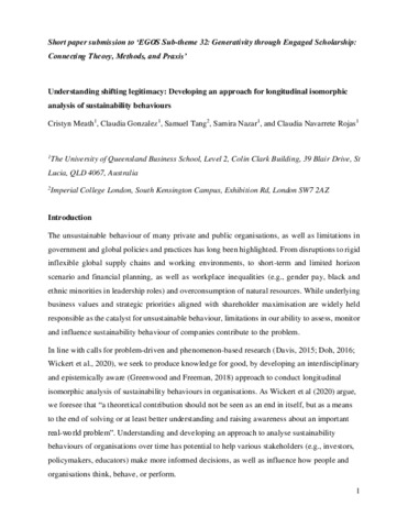 | Title: | Understanding shifting legitimacy: Developing an approach for longitudinal isomorphic analysis of sustainability behaviours |