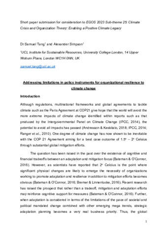 | Title: | Addressing limitations in policy instruments for organisational resilience to climate change |