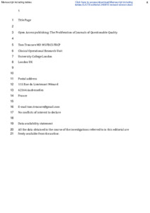 | Title: | Open access publishing: the proliferation of journals of questionable quality |