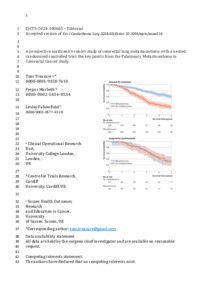 | Keywords: | Pulmonary metastasectomy; colorectal cancer; prospective cohort study; randomised controlled trial; surgery, non-inferiority trial |